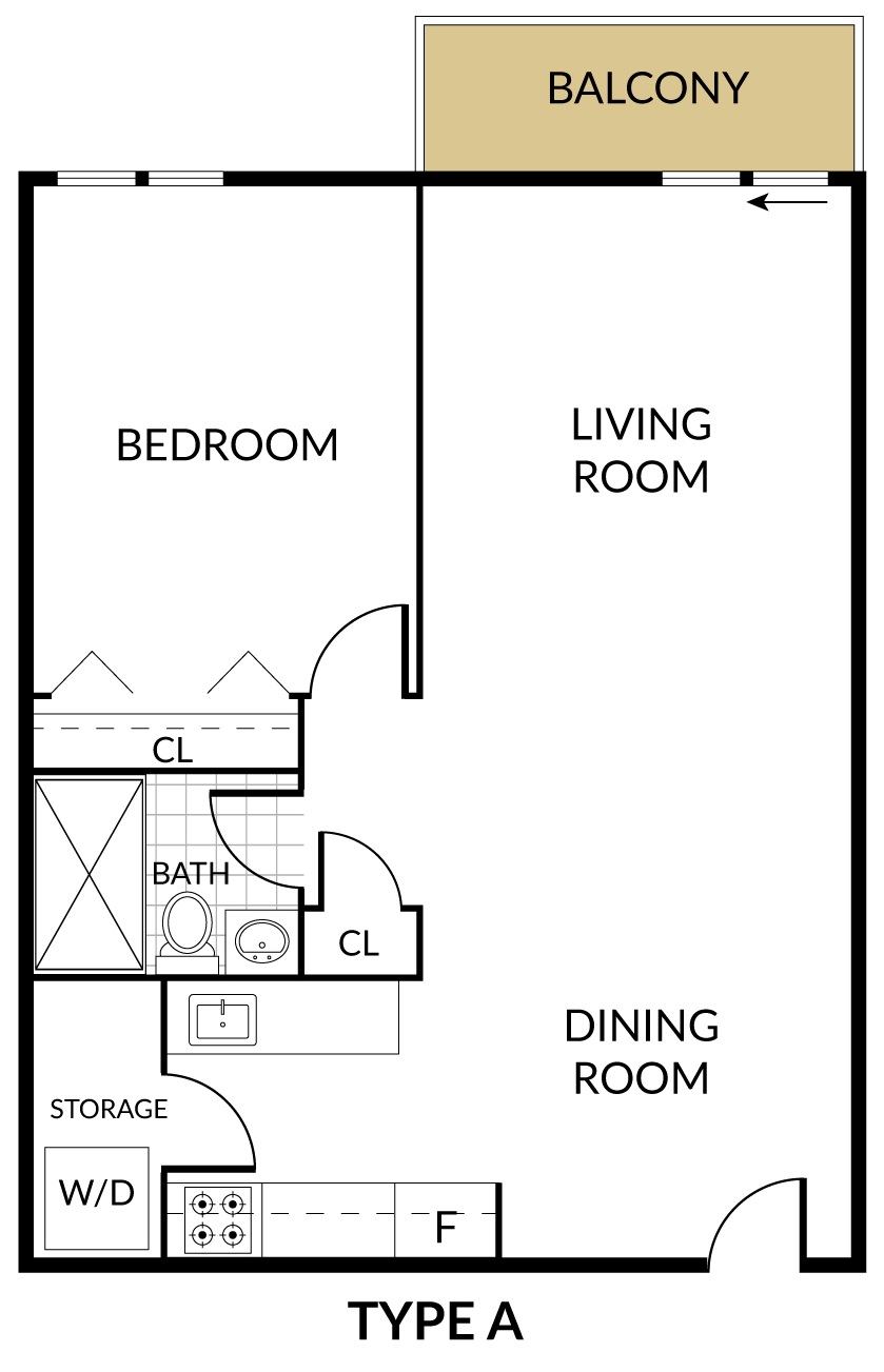 | 1 Bed | 1 Bath(Layout A)